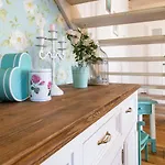 There is a fully furnished kitchen equipped with a microwave oven, an electric kettle, and a refrigerator. The closest bus stop is Homok utca, which is a mere 250 metres away.